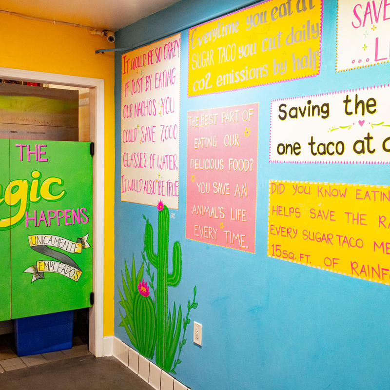 At Sugar Taco, we believe great food and great ethics go hand in hand. Our menu stays true to authentic Mexican flavours without any of the icky stuff that comes from animal products (like the deforestation, the heart disease, the killing animals, you know). We are proud tree huggers and we source our produce from local organic farmers.